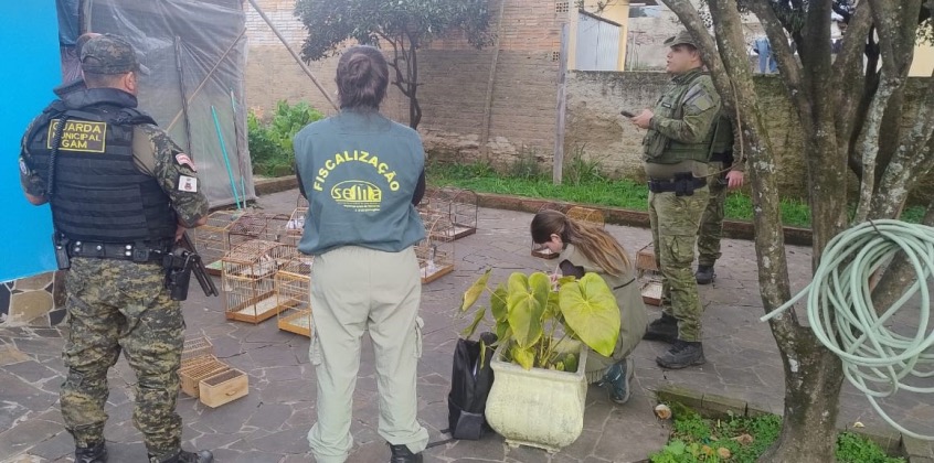 Mais de 40 pássaros silvestres foram apreendidos, além de armadilhas utilizadas para captura ilegal dos animais. As medidas administrativas cabíveis foram tomadas pela Sema-RS com o apoio da Guarda Municipal.